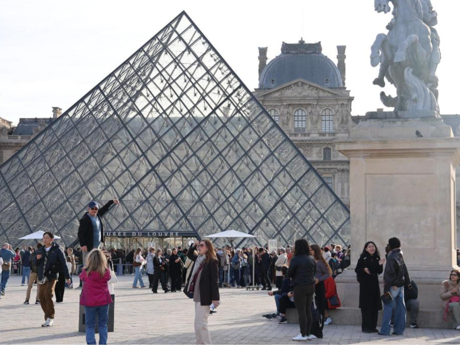 2024年9月22日,位于法国巴黎的卢浮宫附近人头攒动。新华社记者高静摄