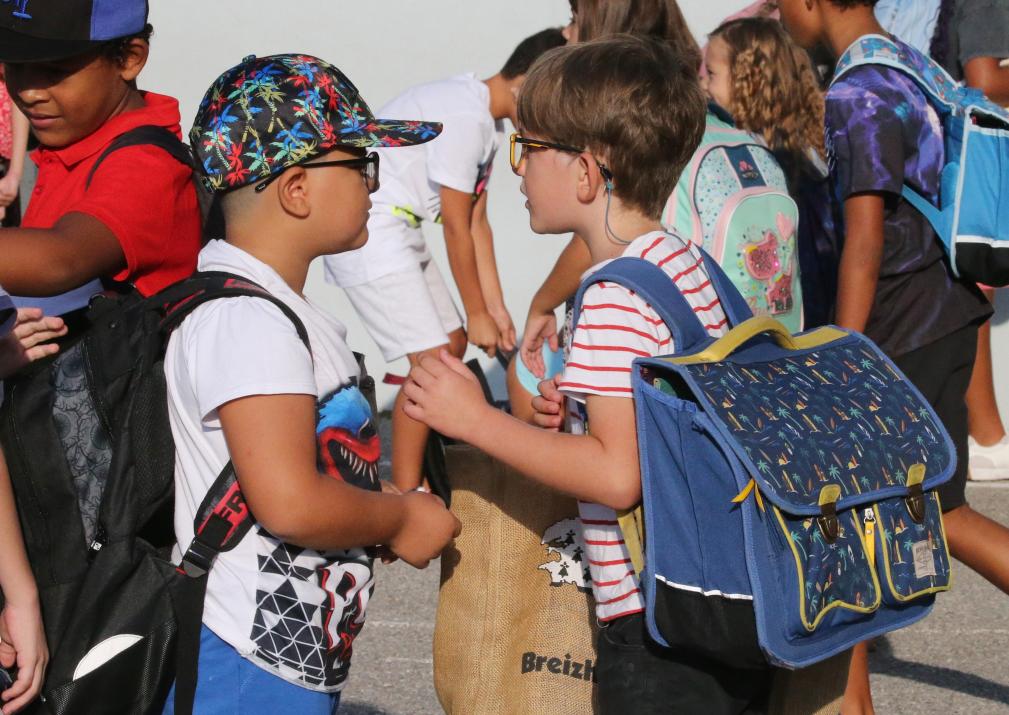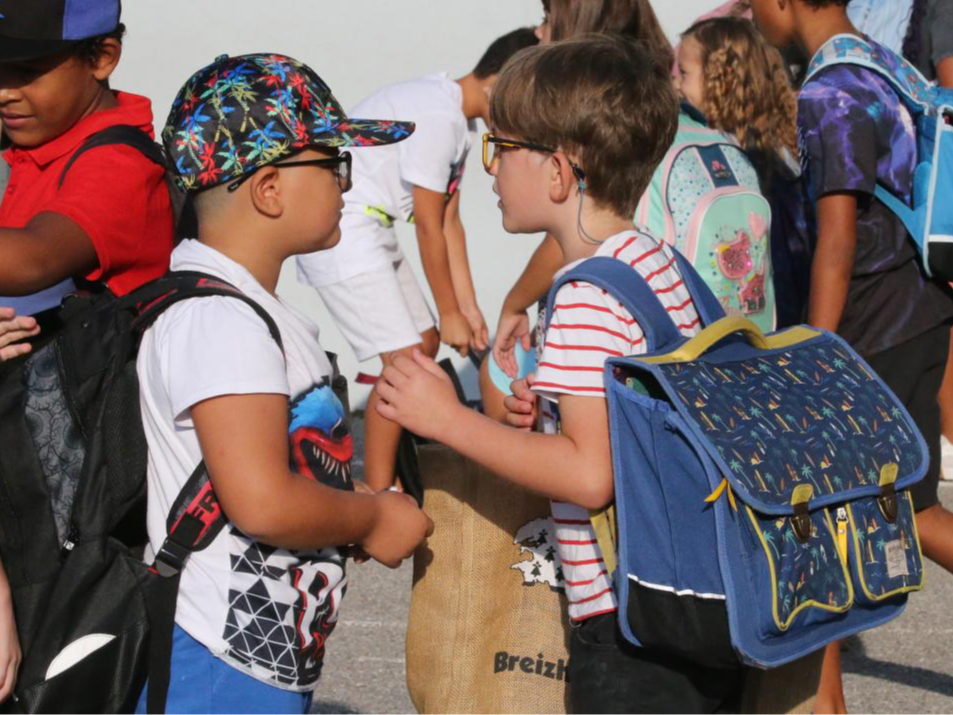 2022年9月1日,在法国南部小城昂蒂布,学生们抵达学校。新华社发(塞尔日·阿乌齐摄)