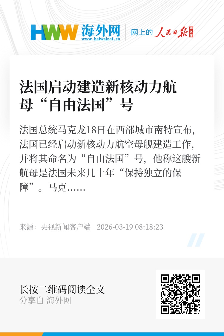法国总统马克龙18日在西部城市南特宣布,法国已经启动新核动力航空母舰建造工作,并将其命名为“自由法国”号,他称这艘新航母是法国未来几十年“保持独立的保障”。