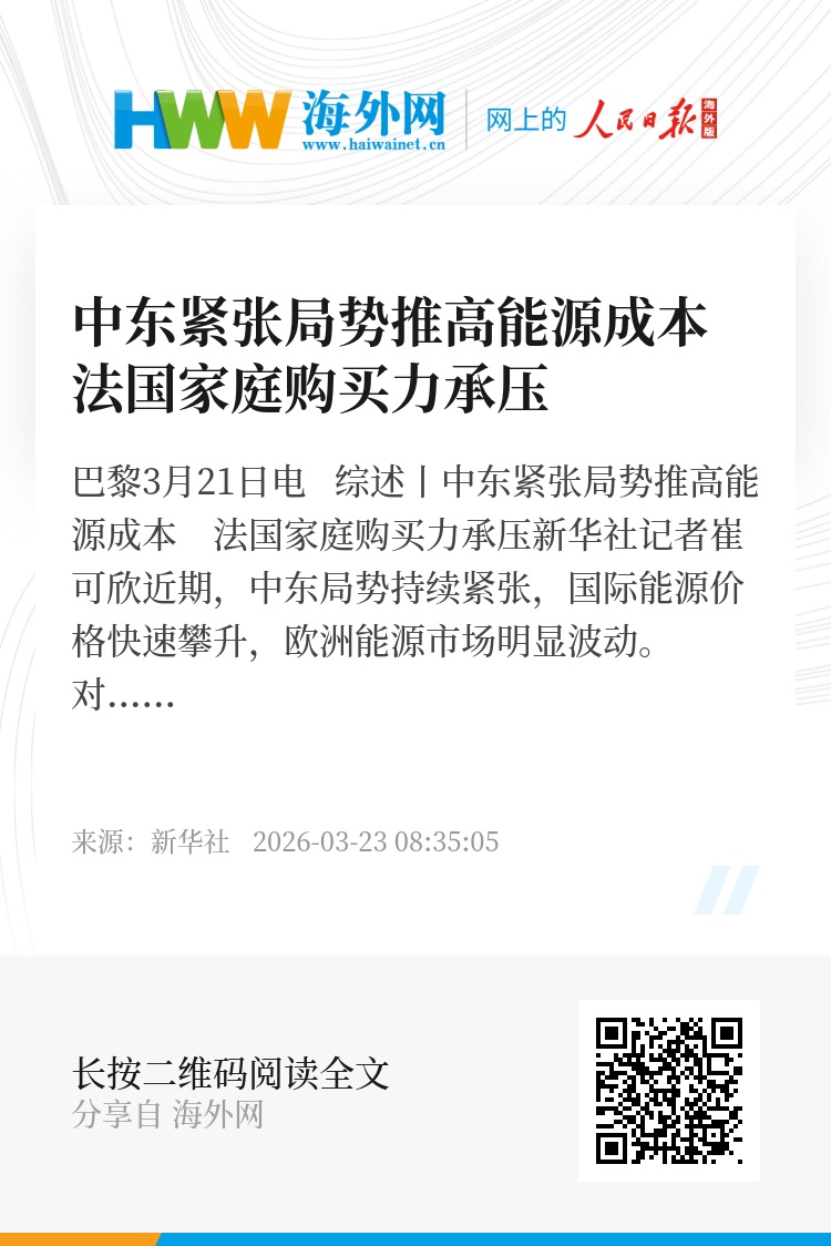 新华社巴黎3月21日电 综述丨中东紧张局势推高能源成本 法国家庭购买力承压